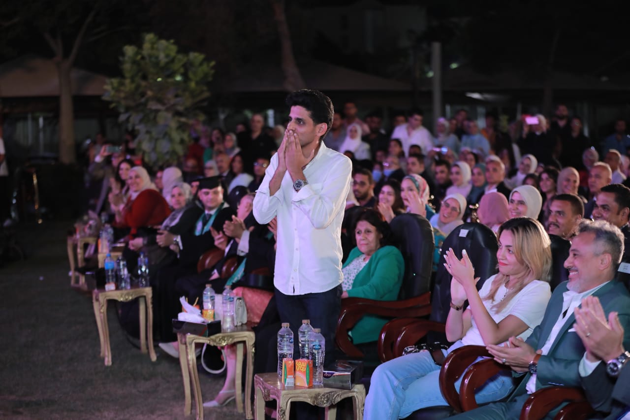 وقال الفنان إيهاب فهمي :"دائما منورين الوطن العظيم بعملكم وجهدكم، وهذه اللحظة من أجمل اللحظات لكنى لم أشعر بها لأنه لم تكن على أيامنا حفلات تخرج، حافظوا على بلدكم وأتمنى لكم مستقبل مشرق"، بينما قال الميرغنى :"ألف مبروك، وانتم في بداية تحقيق أحلامكم بعد التخرج، موضحاً أن جامعة مصر للعلوم والتكنولوجيا، لها فضل كبير عليه، مشيراً إلى أن ان مسرح مصر بدأ من على مسرح اوبرا الجامعة، وداعب الحضور قائلا:",ياما كلت "كريب" على النجيل بتاع الجامعة".