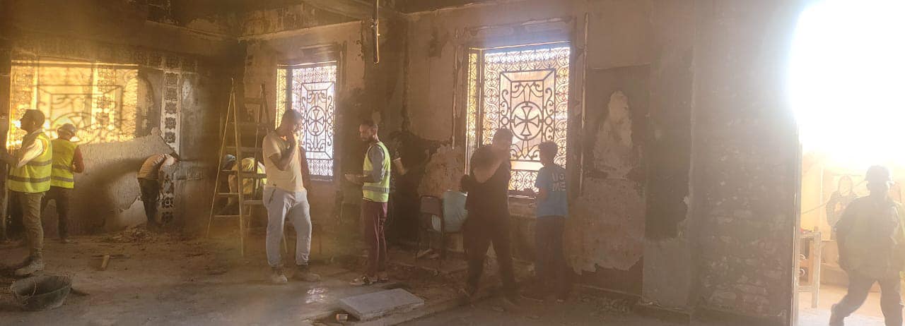 رفع مخلفات حريق كنيسة الأنبا بيشوى بالمنيا الجديدة