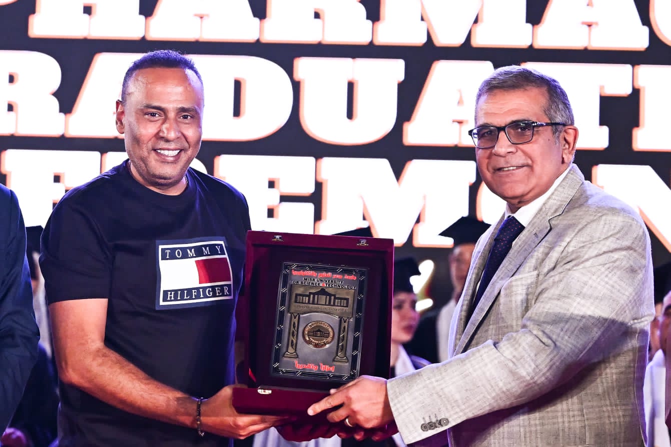 احتفلت كلية الصيدلة جامعة مصر للعلوم والتكنولوجيا، بحفل تخرج طلاب العام الدراسي 2021ـ2022، فى حفل ضخم ووسط أجواء مبهرة، تحت رعاية خالد الطوخى رئيس مجلس أمناء جامعة مصر للعلوم والتكنولوجيا، وبحضور الدكتور اشرف حيدر غالب، القائم بأعمال رئيس جامعة مصر للعلوم والتكنولوجيا، والدكتور شريف رفعت نائب رئيس الجامعة لشئون خدمة المجتمع وتنمية البيئة، والدكتور رحاب عبدالمنعم القائم بأعمال عميد كلية الصيدلة، والفنان بيومي فؤاد، والفنان محمود عبدالمغني.