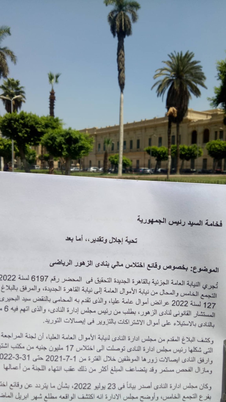 "فساد واختلاس أموال".. أعضاء نادي الزهور يتقدمون ببلاغ للرئيس السيسي ويطالبون بسرعة التحقيق
