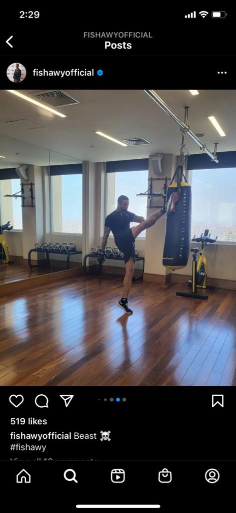 استعرض الفنان أحمد الفيشاوي لياقته البدينة في الجيم حيث شارك متابعيه صور جديدة له، عبر صفحته علي"الإنستجرام"، وظهر الفيشاوي وهو يقوم داخل إحدي صالات الجيم،وعلق الفيشاوي قائلا"الوحش".