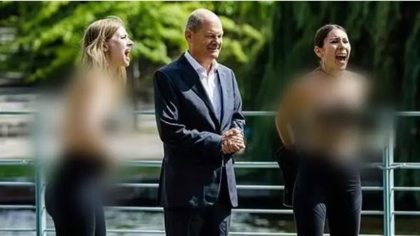 فاجأت ناشطتان ، المستشار الألماني أولاف شولتس بعدما تقدّمتا لالتقاط صورة معه فخلعتا من دون سابق إنذار قميصيهما وظهرتا بصدر عار للمطالبة بـ "حظر الغاز" الروسي.