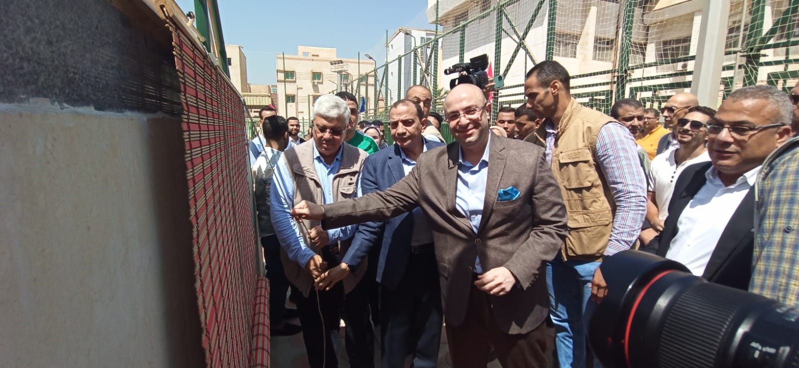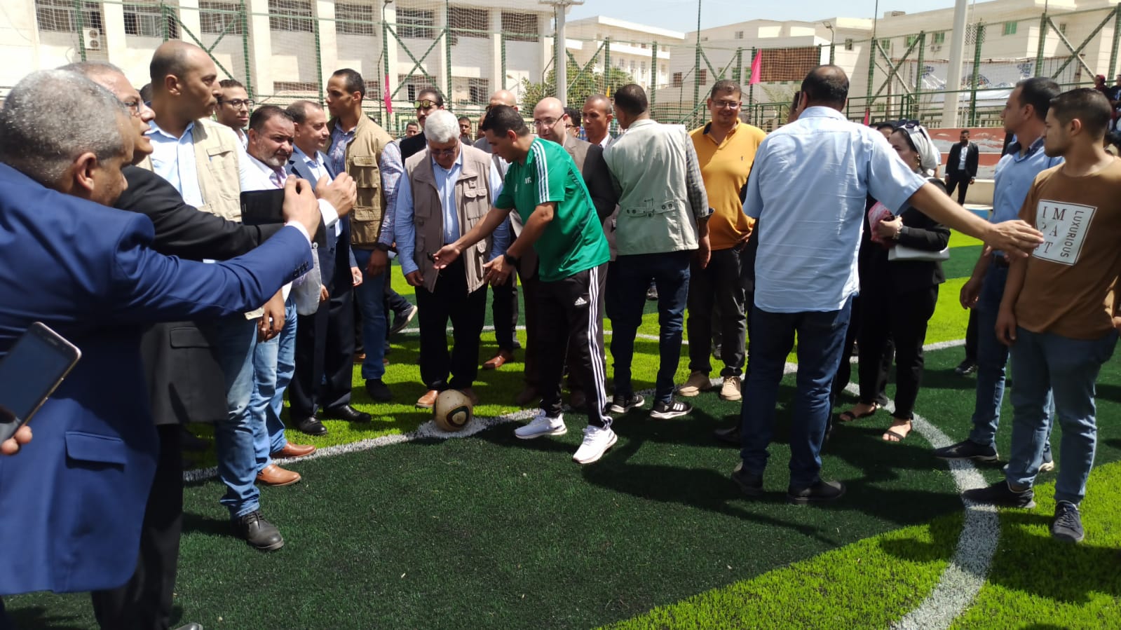 وزير التعليم العالي ومحافظ بني سويف ورئيس الجامعة يفتتحون أعمال تطوير الملعب الخماسي