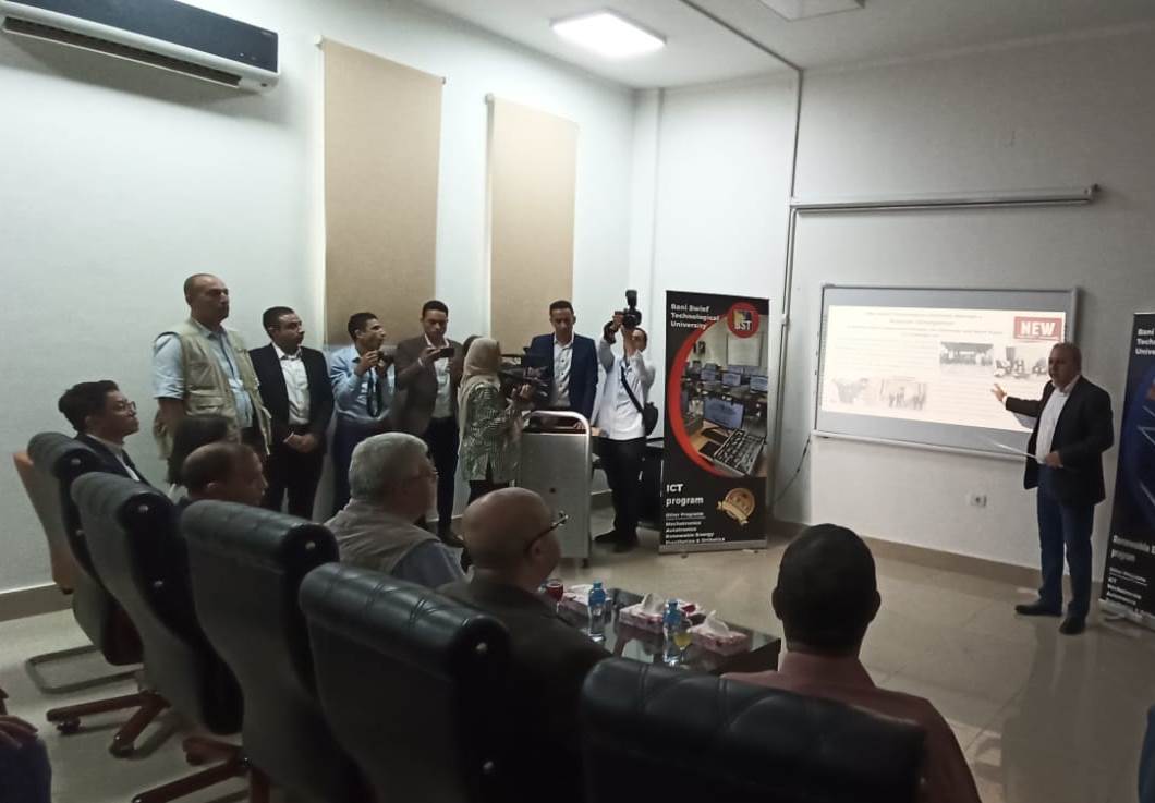 زار الدكتور محمد أيمن عاشور وزير التعليم العالي والبحث العلمي يرافقه الدكتور محمد هاني غنيم محافظ بني سويف مقر الجامعة التكنولوجية بالحي الأول بمدينة بني سويف الجديدة شرق النيل وذلك بحضور الأستاذ الدكتور محمد شكر ندا رئيس الجامعة التكنولوجية ، والأستاذ الدكتور منصور حسن رئيس جامعة بنى سويف ، و أعضاء مجلسي النواب والشيوخ ورؤساء الجامعات وعدد من رجال الصناعة والتعليم العالي