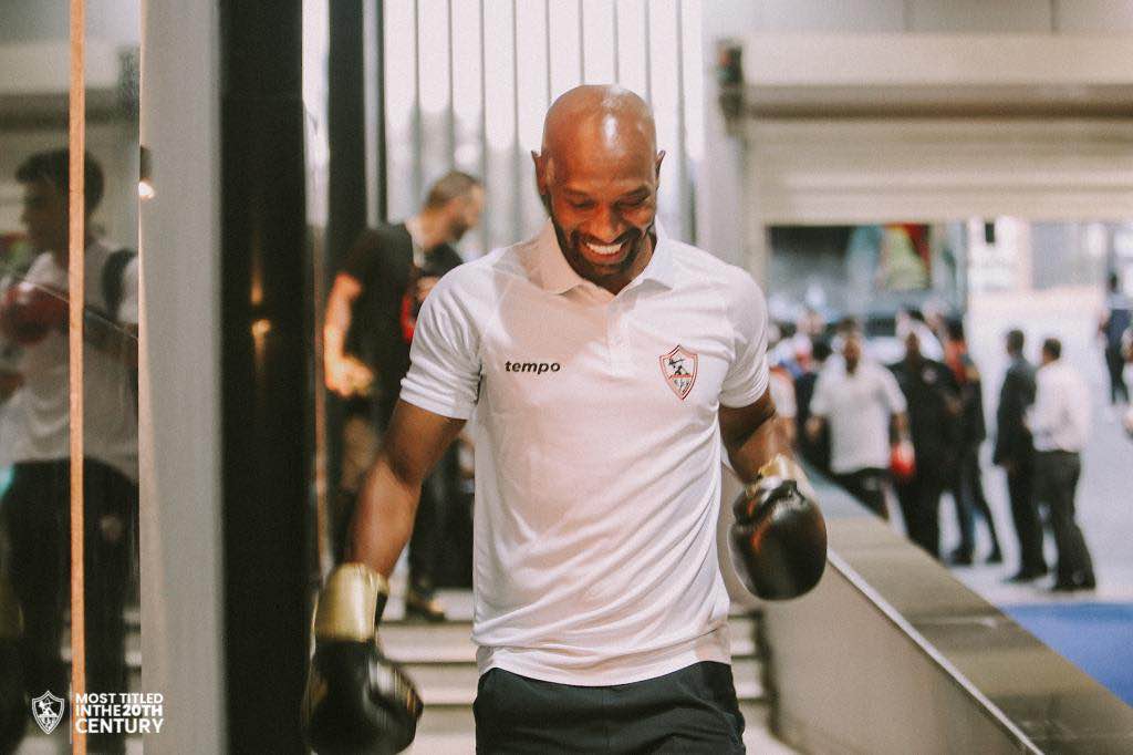 لاعبي الزمالك يرتدون قفازات الملاكمة قبل موجهة الاتحاد