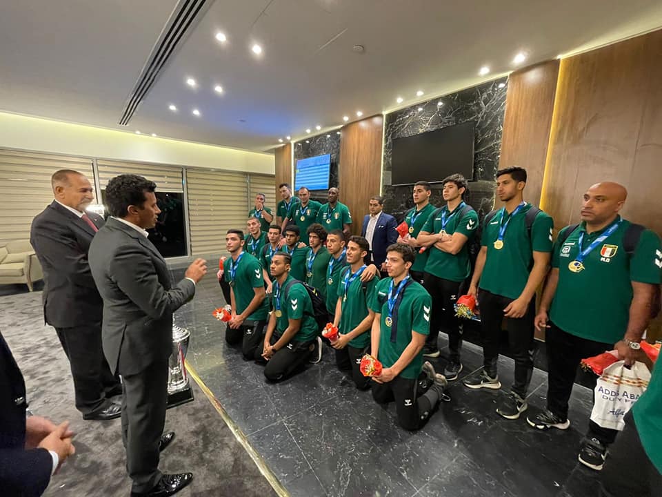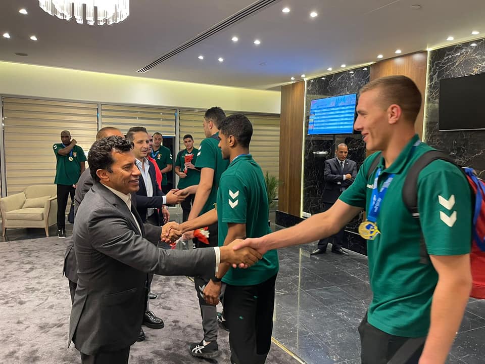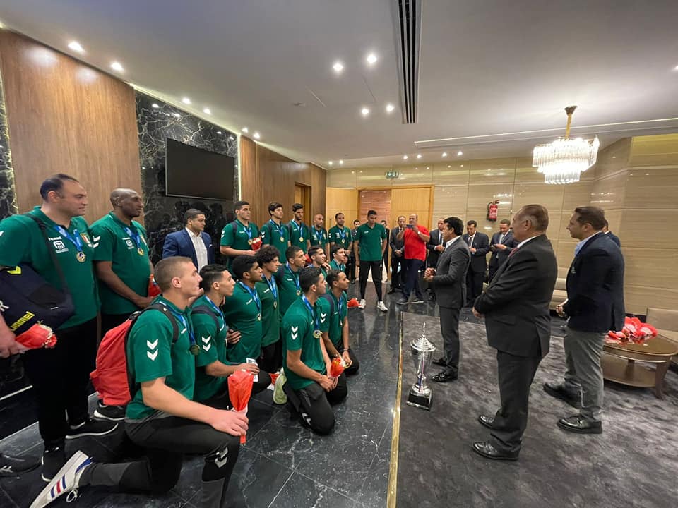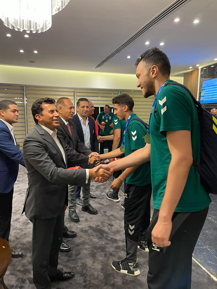 وزير الرياضة يستقبل شباب اليد بمطار القاهرة بعد الفوز ببطولة إفريقيا