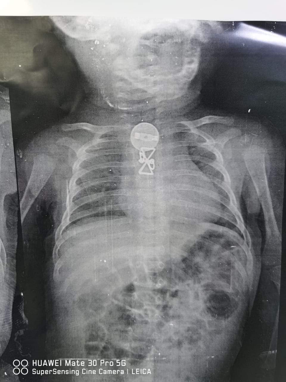 وأشار رئيس الفريق الطبي، أن المستشفى استقبلت الطفل وكان يعانى من التنفس وتم حجزه بالمستشفى وعمل الإشاعات اللازمة وتبين وجود جسم معدني داخل الجسد وتم استخراجه ، وتم العرض على والديه الذين أقروا ان شقيقته الكبرى كانت تداعبه و قام ببلع تلك الجسم المعدنى منذ فترة.