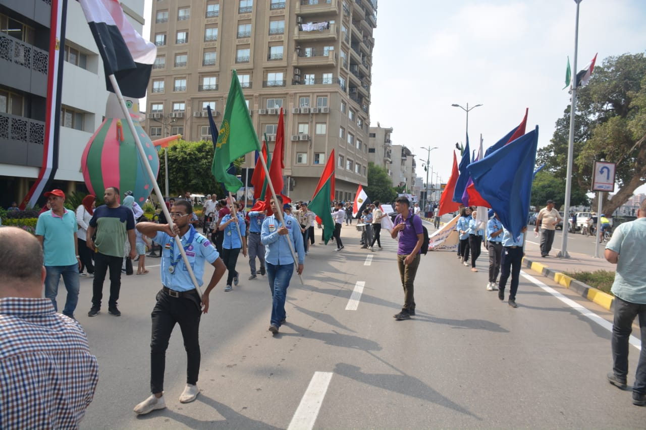 وشهد "المحافظ" المسيرة التي شارك فيها أكثر من ٤٠٠ شاب وفتاه من جميع مدن المحافظة، بالإضافة إلى أكثر من عدد ١٠٠ شاب من حملة الأعلام، تسبقهم عدد ٨ سيارات عليها بانرات بأبرز المشروعات القومية وما تشتهر به تلك المدن، كما اشتملت المسيرة على عرض فنون شعبية وعرض كاراتيه وعرض تنورة، حيث تأتي هذه الإحتفالية ضمن برنامج الإحتفالات التي نظمتها المحافظة إحتفالاً بعيدها القومي.