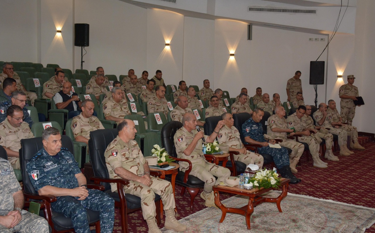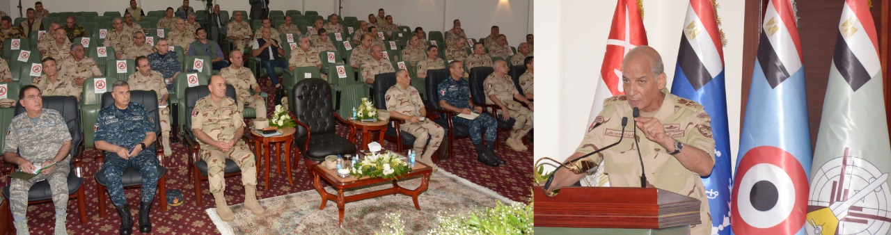 وألقى القائد العام للقوات المسلحة وزير الدفاع والإنتاج الحربى كلمة نقل خلالها تحيات وتقدير السيد الرئيس عبد الفتاح السيسى رئيس الجمهورية القائد الأعلى للقوات المسلحة لقادة القوات المسلحة ، مؤكداً على ضرورة الحفاظ على أعلى معدلات الكفاءة والإستعداد القتالى العالى للوحدات والتشكيلات ، والإرتقاء بالمستوى المهارى والبدنى للمقاتلين بالتدريب المستمر والروح المعنوية العالية ، والمحافظة على الأسلحة والمعدات والمركبات لتظل القوات المسلحة فى أعلى درجات اليقظة والإستعداد لتنفيذ أى مهام تسند إليها تحت مختلف الظروف .