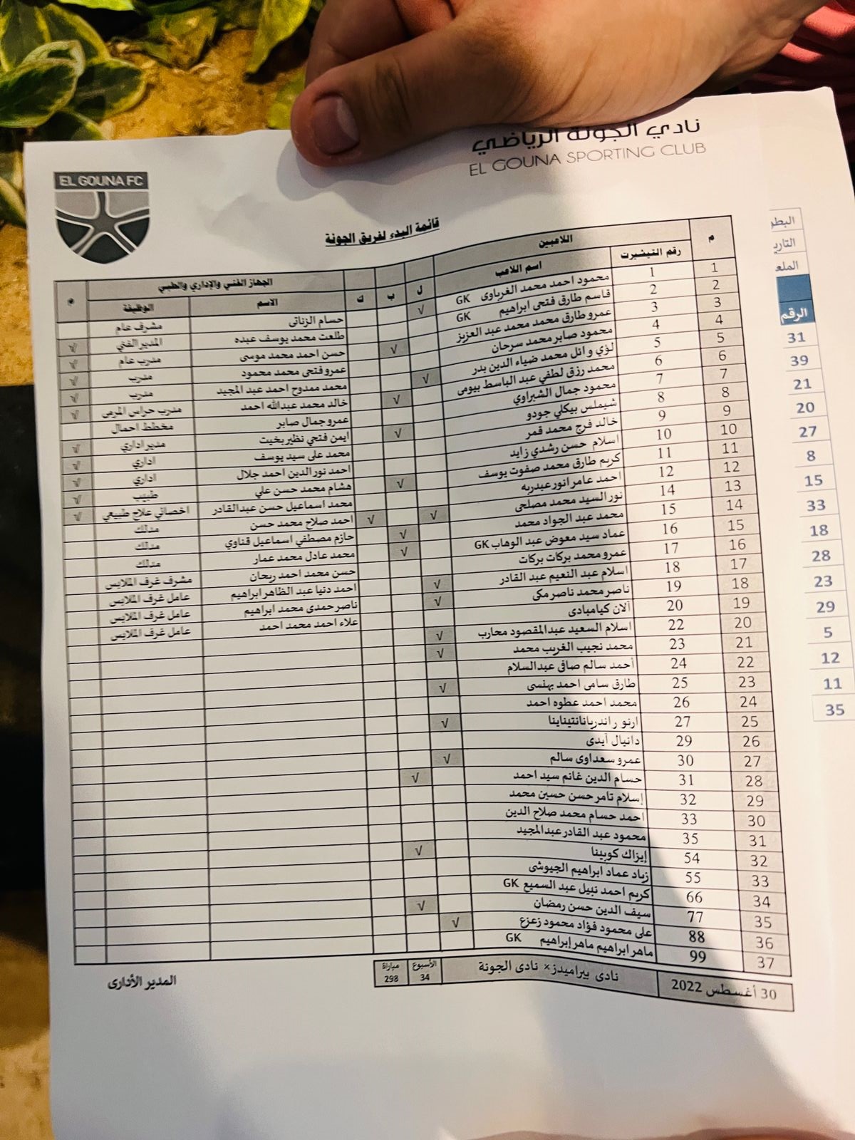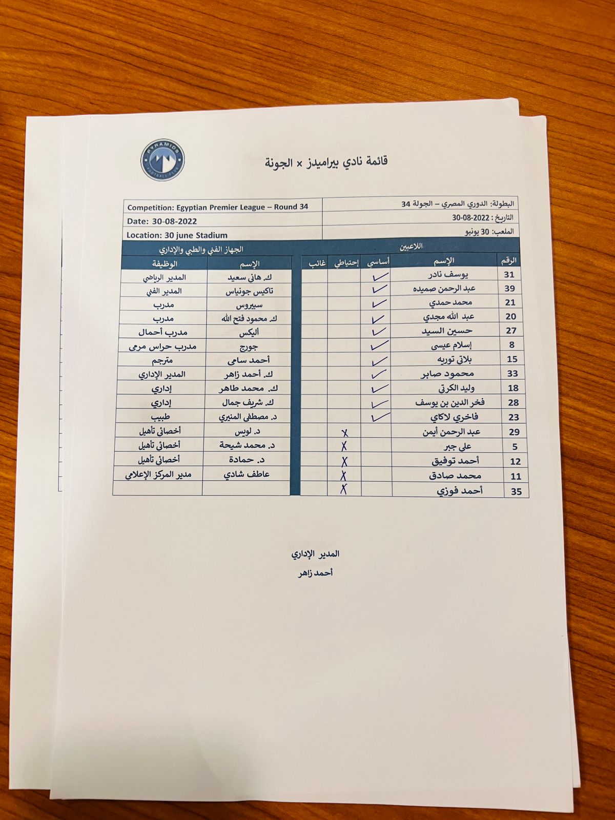 خط الوسط: إسلام عيسى - إبراهيم توريه - محمود صابر - وليد الكرتي - فخر الدين بن يوسف