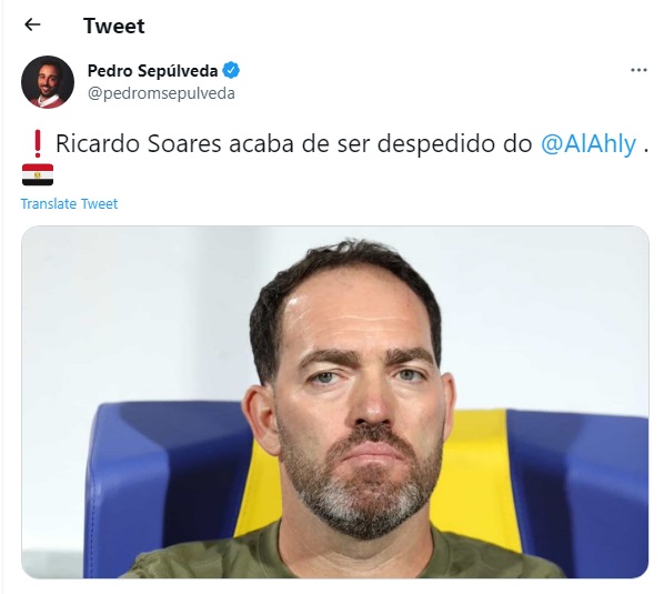 كشفت تقارير إعلامية برتغالية اليوم الأربعاء، أن النادي الأهلي قرر فسخ تعاقده مع ريكاردو سواريش، المدير الفني للفريق الكروي الأول بالنادي، وذلك بسبب تراجع النتائج.