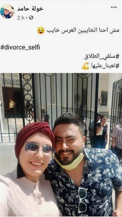 شارك الطليقان خولة حامد، ووليد شكري، صورة السيلفي بعد الطلاق على حسابهما على "فيسبوك" بتعليق : "موش إحنا الخايبين العرس خايب"، أي لسنا سيئين وإنما الزواج هو السيء.