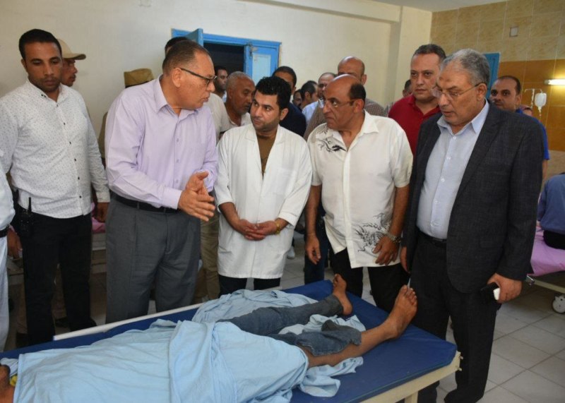 محافظ الشرقية خلال زياته للمصابين: صرف التعويضات اللازمة لضحايا حادث قطار فاقوس