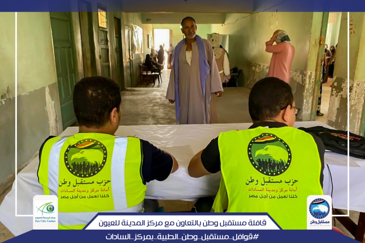 كما نظمت أمانة مركز السادات، قافلة طبية للكشف عن أمراض العيون، في قرية أبو نشابة بالتعاون مع مركز المدينة للعيون، واستمرت القافلة يوم كامل، وقدمت الكشف الطبي علي 198 حالة، مع توفير نظارات بخصومات كبيرة، بالإضافة إلي إجراء عمليات بنسبة من الحزب 20%.