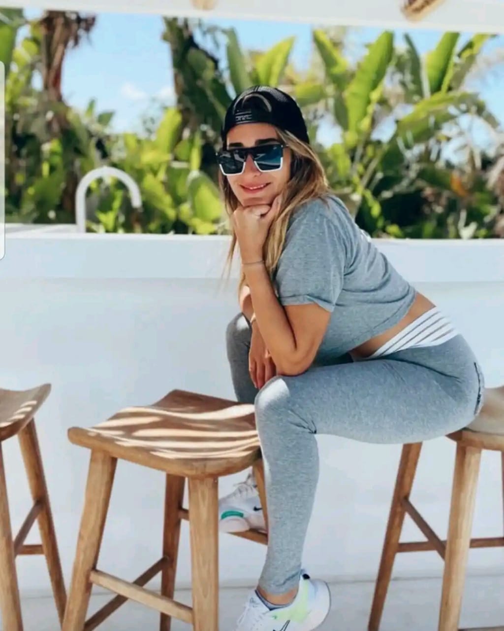 ونشرت أمينة خليل صورها وهي ترتدي ملابس رياضية من تصميم إنجي كيوان، وكانت عبارة عن "تي شيرت" مكشوف البطن، مع بنطلون رياضي ضيق.