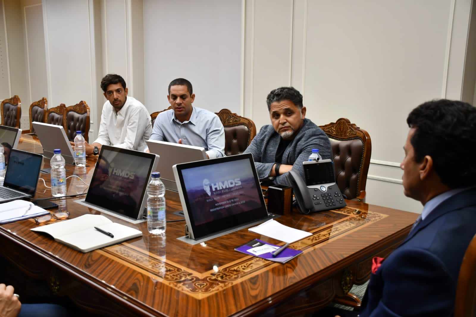 حضر الاجتماع كل من جانب الشركة الفرنسية المنظمة للماراثون كل من "تشافي نونيس، فرديناند شاريا، سيريل جوتييه، أوليفييه سيربيلاند"، وأحمد عبد الخالق مدير عام الإدارة العامة للسياحة والفعاليات الرياضية، وأيمن حقى المؤسس والرئيس التنفيذي لشركة TriFactory، وسيف الدين فوزى مدير العمليات بتراى فاكتورى.