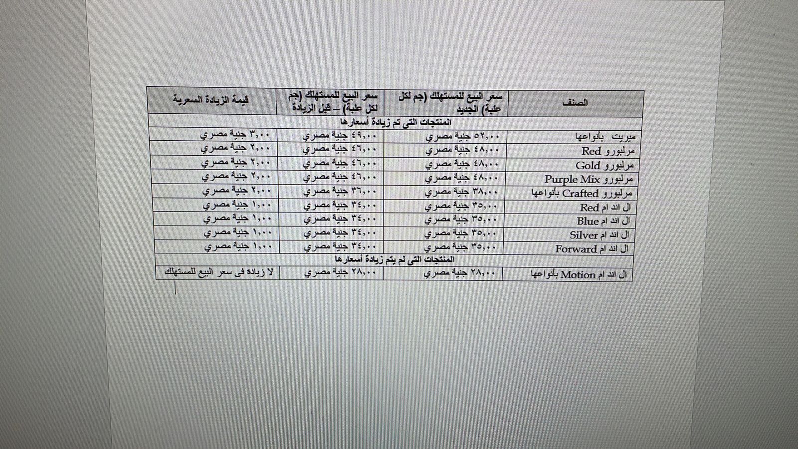 وأشار "امبابي" إلي أن كل جنيه زيادة يدخل الي خزينه الدولة نصف جنيه وجات الزيادة علي النحو الاتي 3 جنيها للمريت بكل أنواعها و2 جنيه للملبوروا بأنواعها و1 جنيه للسجائر LM بانوعها.