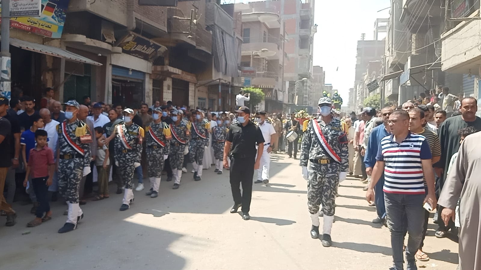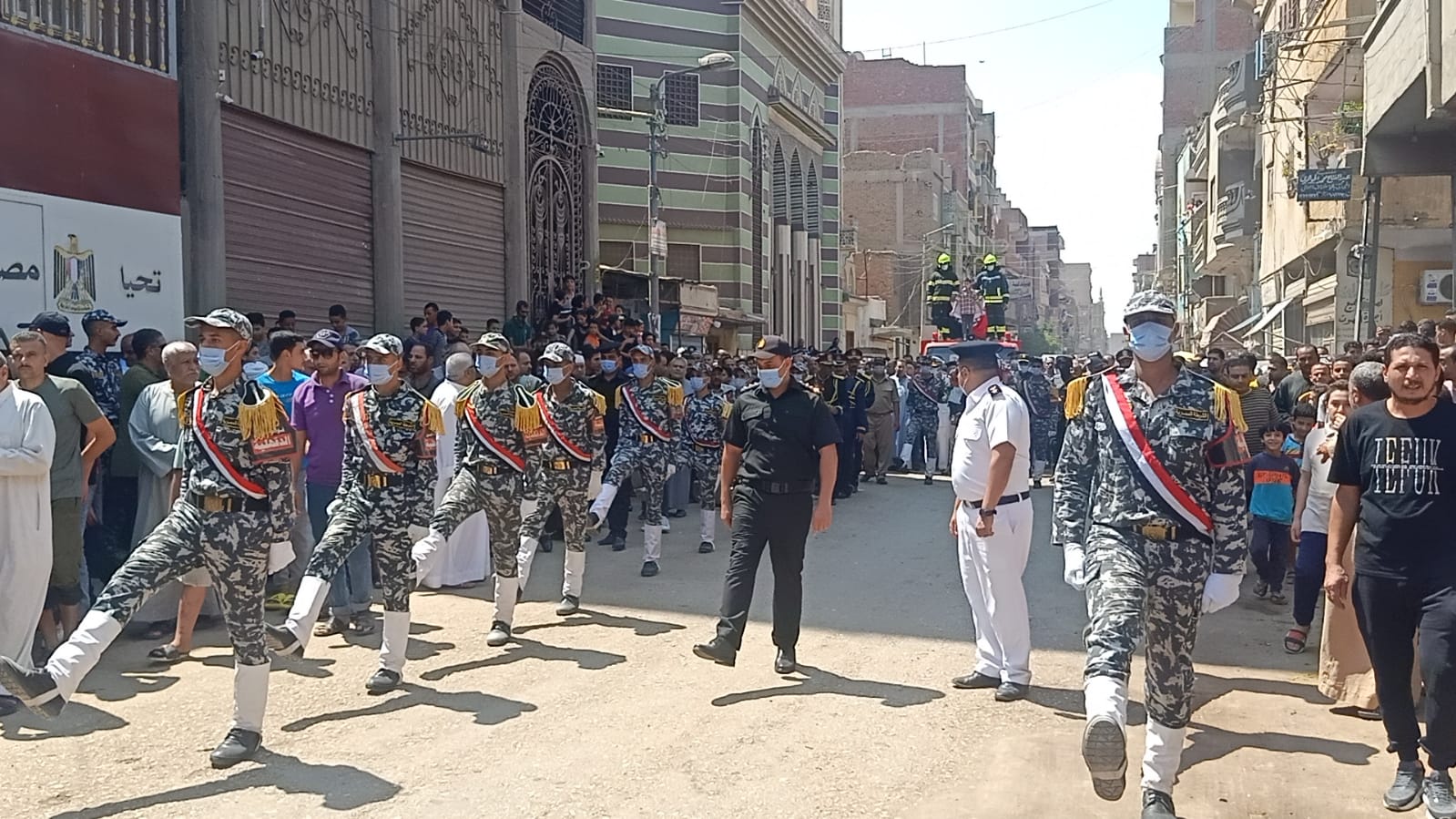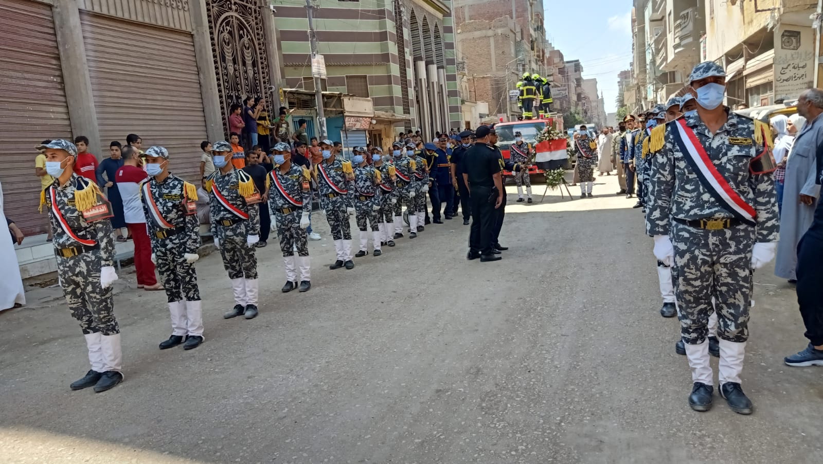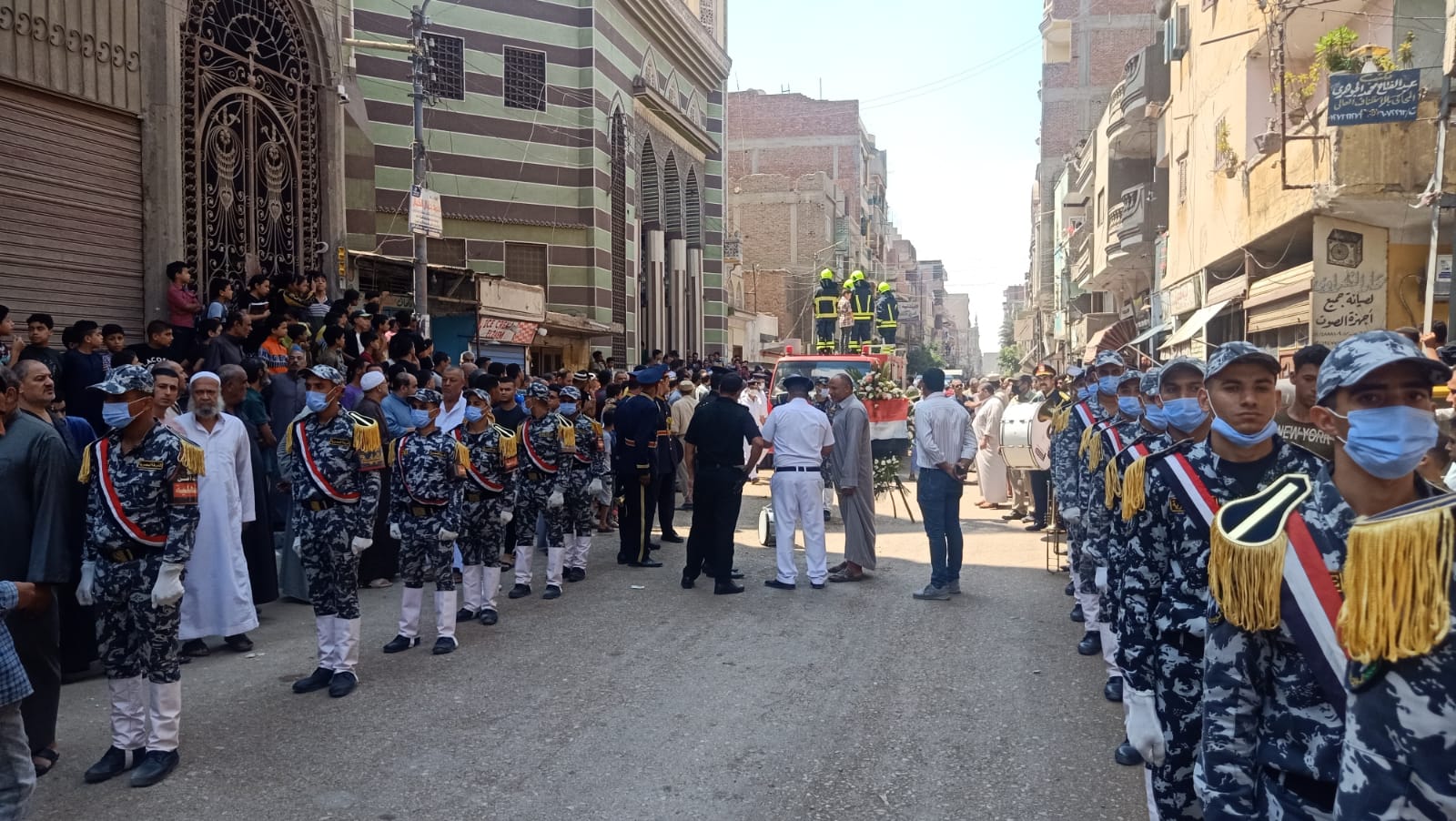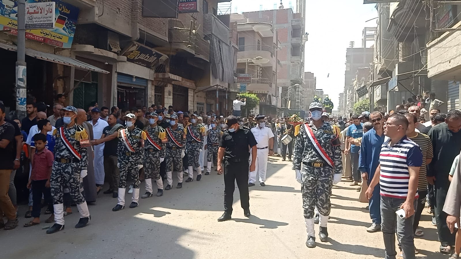 وخرج الجثمان من مسجد الشيخ سراج بالقرية، ملفوفًا بالعلم المصري في جنازة عسكرية تقدمها اللواء مروان حبيب، مدير أمن الدقهلية، وبحضور عدد كبير من القيادات الأمنية وأهالي القرية.