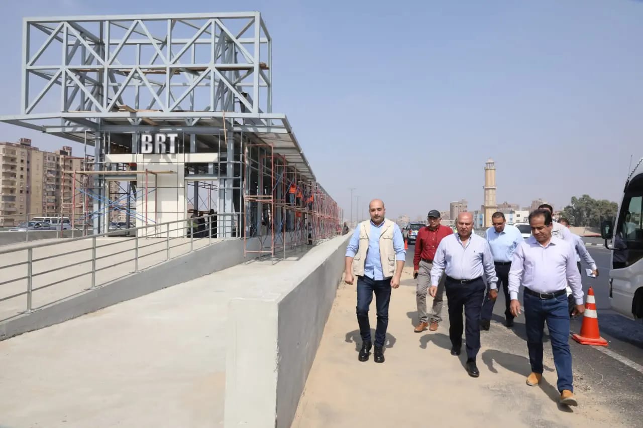 وتفقد الوزير عدد من محطات BRT والتي يبلغ عددها 47 محطة مثل محطات الزهراء والعزبة والجزائر والاوتوستراد والهضبة الوسطى وكارفور معدلات الأمان والسلامة على الطريق والاهتمام باللوحات الإرشادية واكاديمية الشرطة والسلام والشرقية وكذلك عدد من المواقع المخصصة لشحن الاتوبيسات مثل: محطة الأتوبيس الترددي بمحور المشير والربط بينها وبين مونوريل العاصمة الإدارية وحيث سيصبح الطريق 6 حارات للملاكي، ثم حارة داخلية مخصصة للأتوبيسات BRT ليصبح الإجمالي 7 حارات في كل اتجاه ما عدا كوبري المنيب الذي سيكون الإجمالي 8 حارات في كل اتجاه.