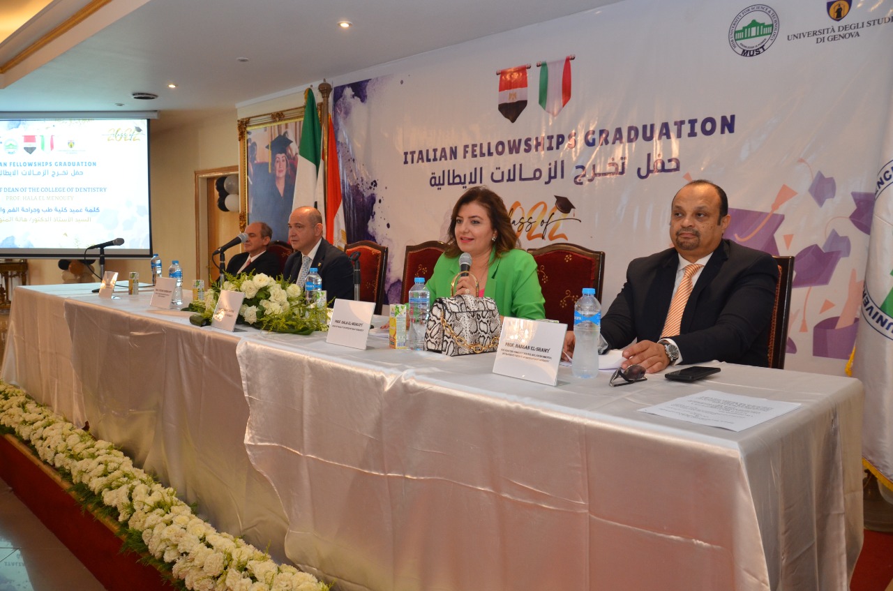 وأكدت الدكتورة هالة المنوفى عميد كلية الطب وجراحة الفم والاسنان بجامعة مصر للعلوم والتكنولوجيا، إن الكلية تمكنت من خلال اتفاقية دولية مع جامعة جنوة الإيطالية والممتدة من عام 2014 الي الآن من تخريج ما يقرب من 450 طبيب تم تدريبهم علي أعلي مستوي لاستخدام التقنيات الحديثة في مجال طب الأسنان وذلك تماشيا مع رؤية الكلية وهي تخريج طبيب قادر علي المنافسة محليا وعربيا ودوليا، موضحة أن جامعة مصر للعلوم والتكنولوجيا تحتفل بعرس تعودت عليه، حيث يتم تخريج المشتركين في برنامج الزمالة الإيطالية كل عام والذي يضم نخبة مختارة من خريجي كليات طب الفم والأسنان داخل جمهورية مصر العربية وخارجها، فهو عُرس سنوي تم المشاركة فيه مع أعرق الجامعات الأوروبية وهي جامعة جنوة الإيطالية لنجني ثمار مسيرة النجاح المتواصلة.