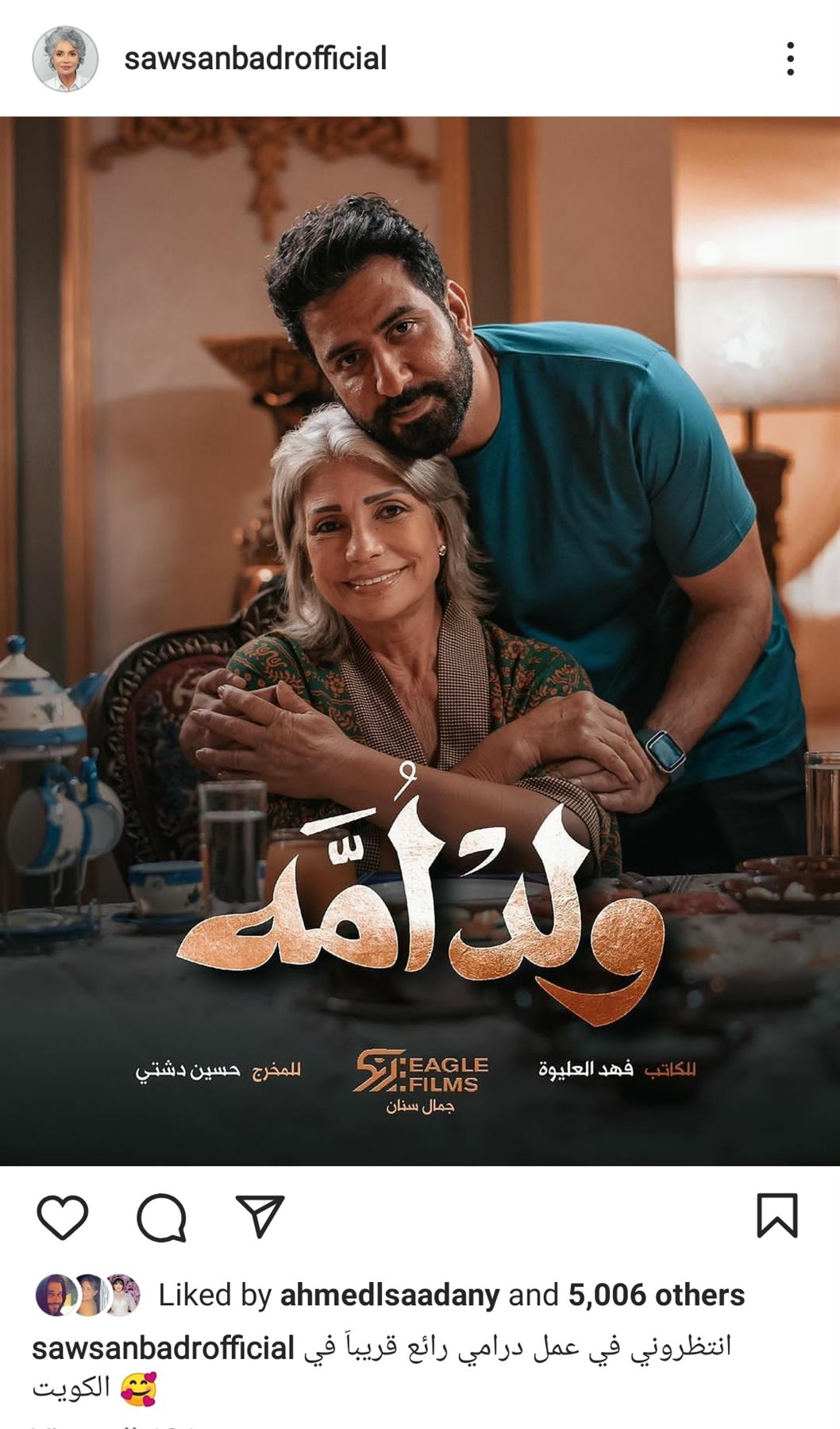 طرحت الفنانة سوسن بدر البوستر الرسمي لمسلسلها الجديد الكويتي "ولد أمه" وذلك بعد النجاح الكبير الذي حققه مسلسل البحث عن علا .