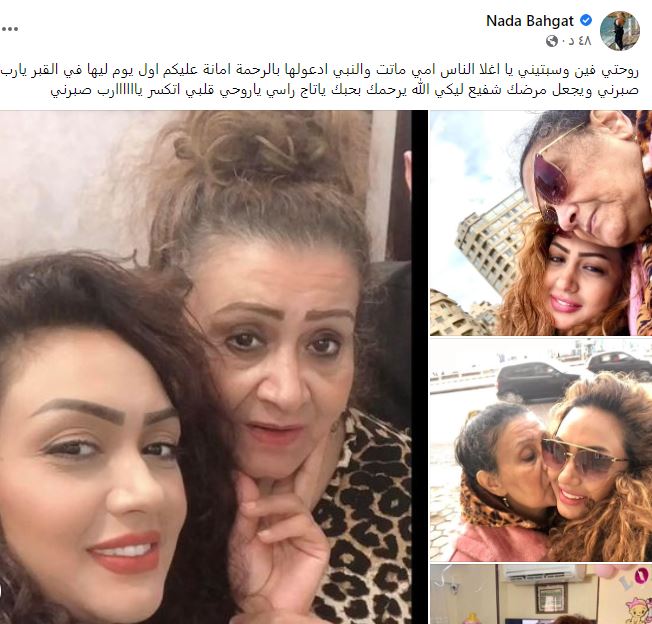 وقالت ندى بهجت عبر حسابها:"روحتي فين وسبتيني يا اغلا الناس امي ماتت والنبي ادعولها بالرحمة امانة عليكم اول يوم ليها في القبر يارب صبرني ويجعل مرضك شفيع ليكي الله يرحمك بحبك ياتاج راسي ياروحي قلبي اتكسر ياااااارب صبرني"