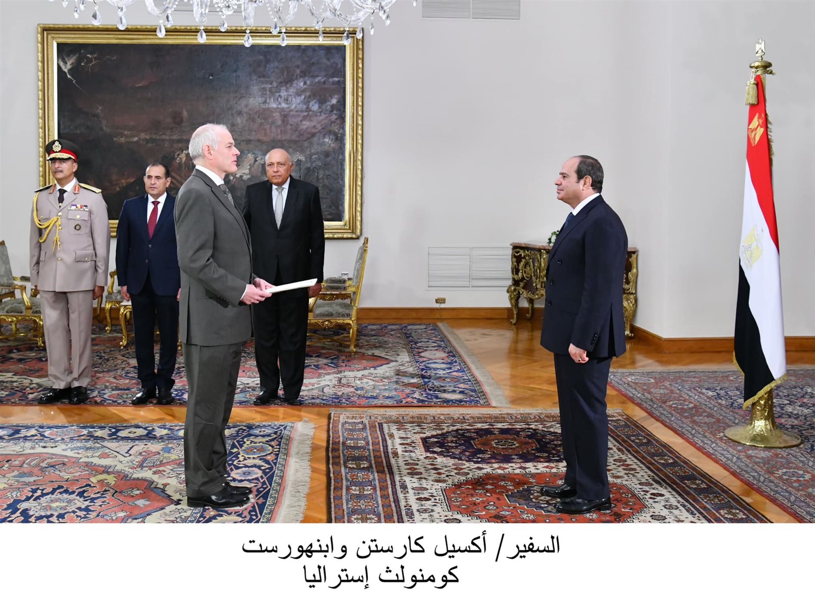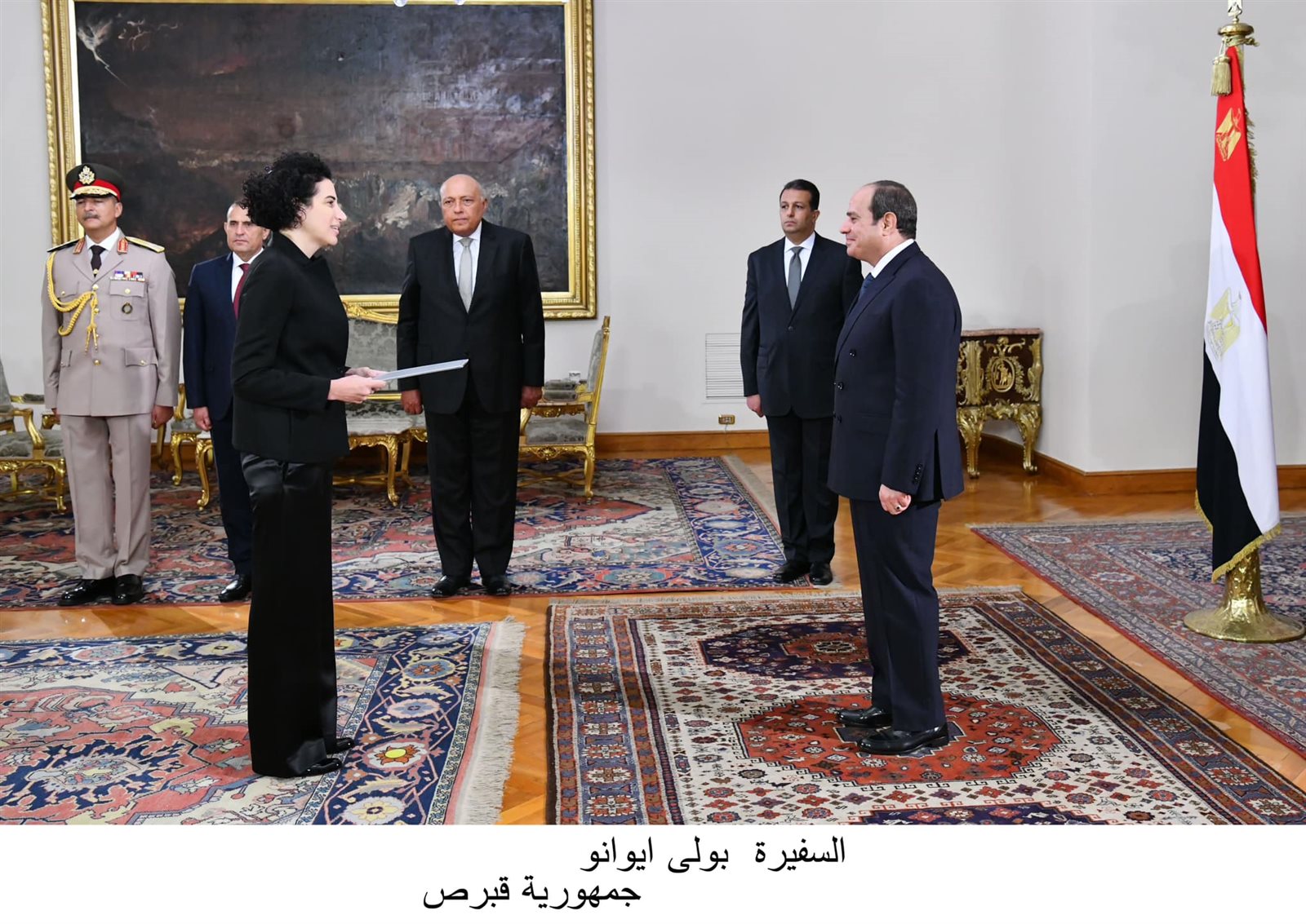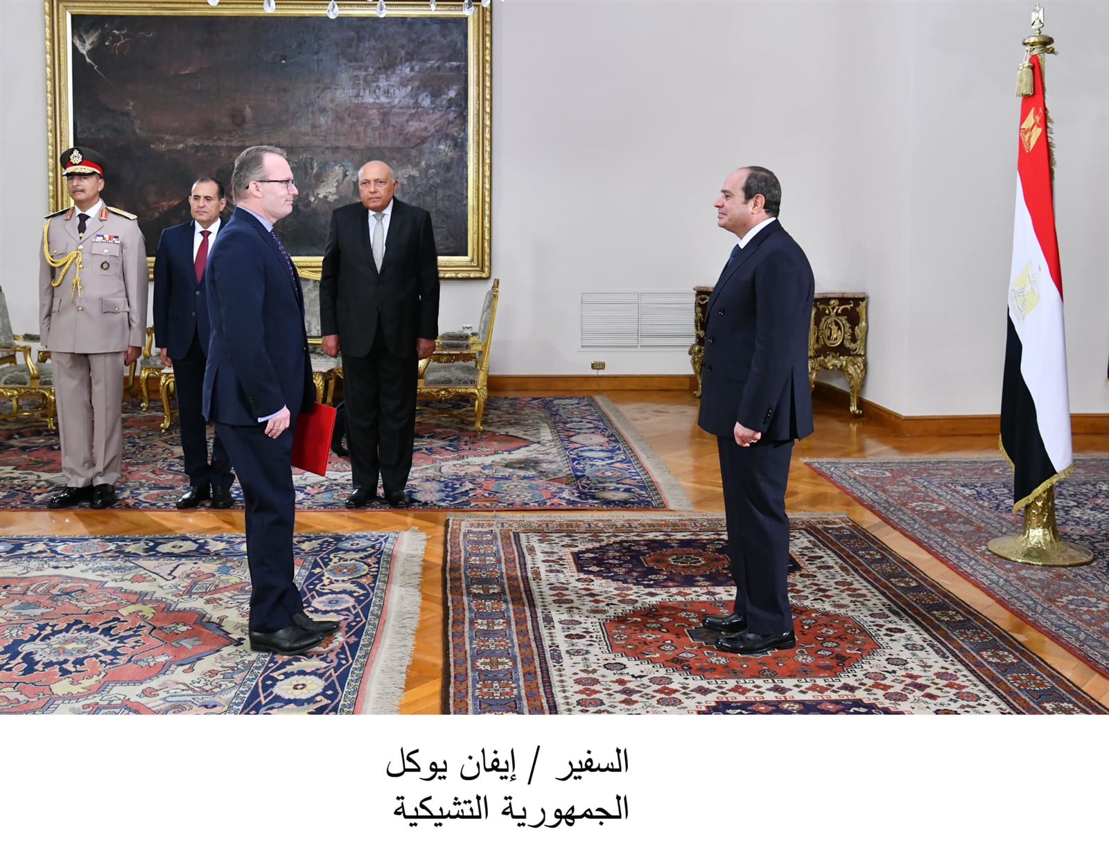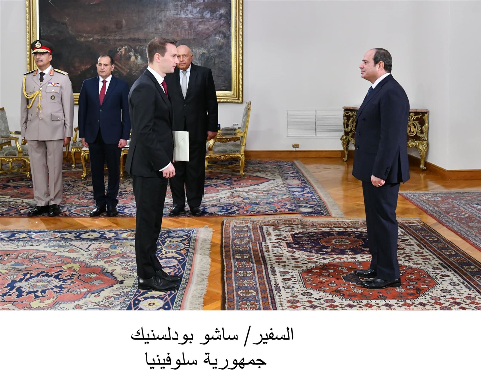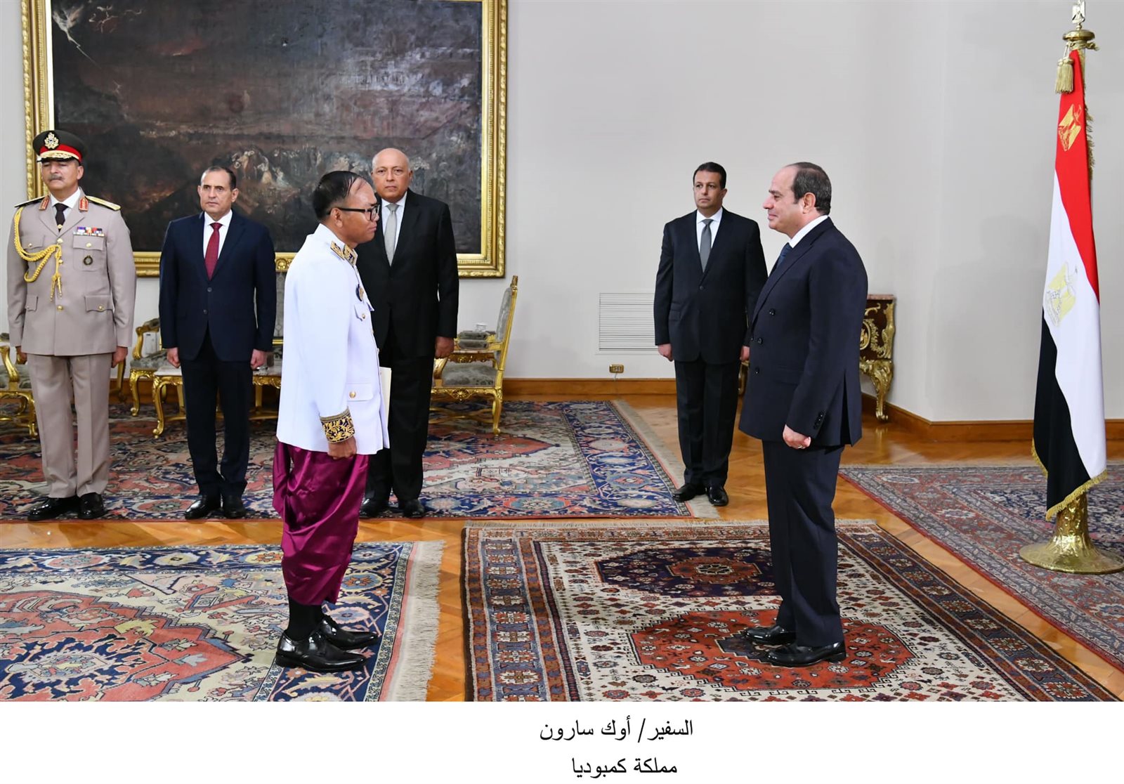وصرح المُتحدث الرسمي باِسم رئاسة الجمهورية السفير بسام راضي، بأن الرئيس السيسي رحب بالسفراء الجدد بالقاهرة، وقد عبر الرئيس السيسي للسفراء عن تمنياته لهم بالتوفيق في مهامهم.