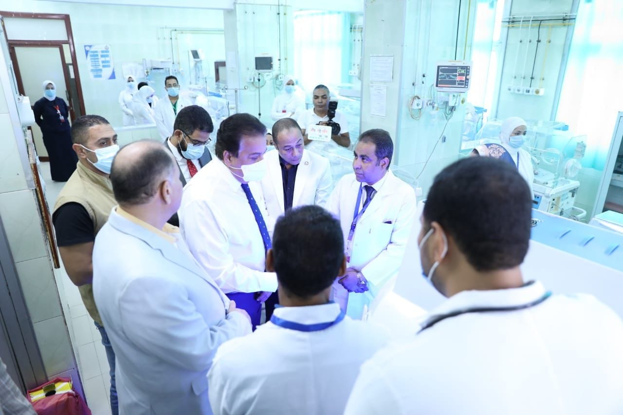 وأضاف «عبدالغفار» أن الوزير تفقد غرف إقامة المرضى، واطلع على الملفات الطبية الخاصة بهم، للوقوف على تطورات حالتهم الصحية والخدمات الطبية التي تقدم لهم منذ دخولهم المستشفى، كما تفقد أماكن انتظار المترددين على المستشفى، للوقوف على مدى رضا المرضى عن الخدمة، كما اطلع الوزير على دورة المريض خلال تلقي الخدمات الطبية بالمستشفى.
