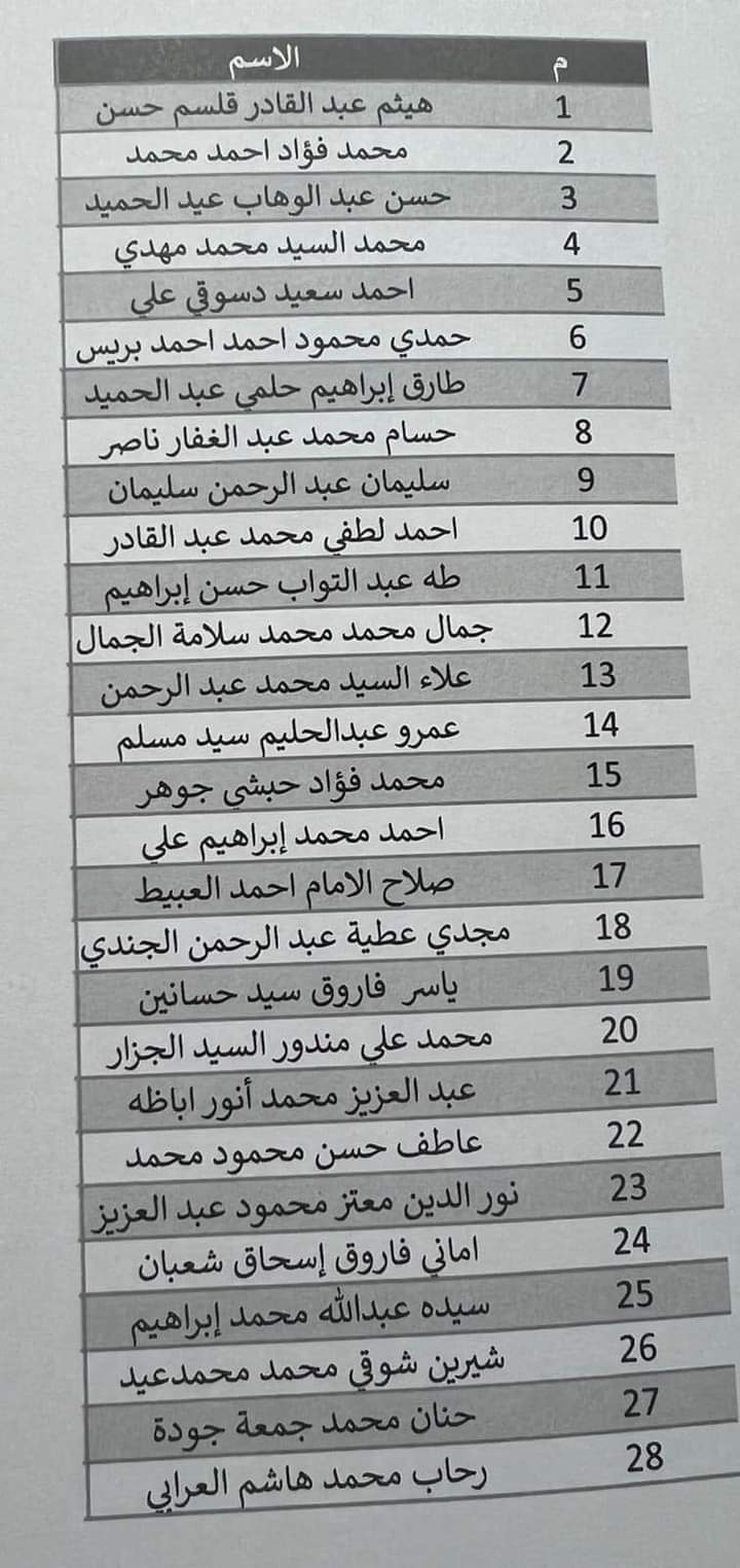 وفيما يلي قائمة بأسماء المفرج عنهم من المحبوسين على ذمة قضايا، وذلك بعد استيفاء الاجراءات القانونية اللازمة.