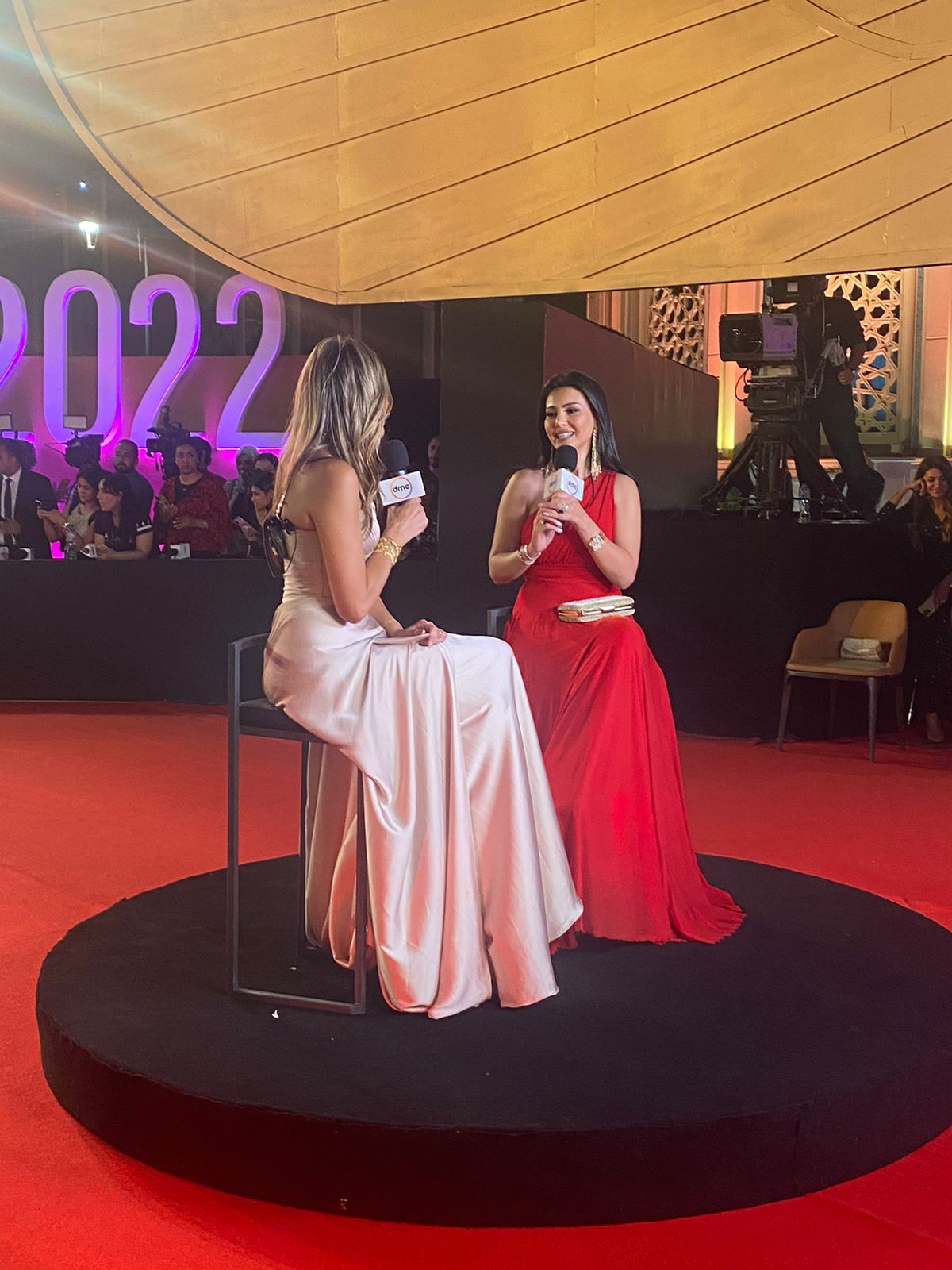 وتألقت دينا فؤاد خلال الحفل، بإطلالة راقية وجذابة، وقالت خلال استضافتها علي هامش افتتاح المهرجان ان مسلسل الاختيار سيكون له تكريم خاص، خلال حفل الافتتاح وهو عمل وطني توافرت له كل عناصر النجح، مشيدة بالمهرجان الذى يرأسه الفنان يحيي الفخراني ولجنة تحكيم المهرجان والتي تضم نخبة من المبدعين، مشيرة إلى انه سيكون اضافة قوية ويثري الدراما المصرية والعربية، وعن تكريم صلاح السعدني، قالت: "أنا من المحظوظين اللي اشتغلت معاه، وفخورة جدًا بيه والتكريم هو يستحقه بجدارة".