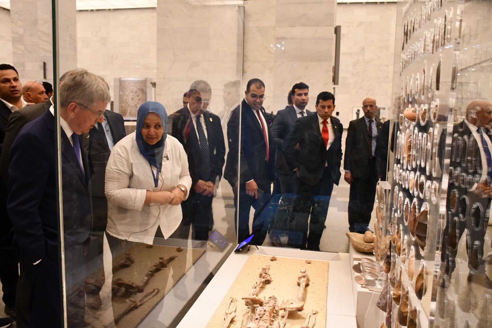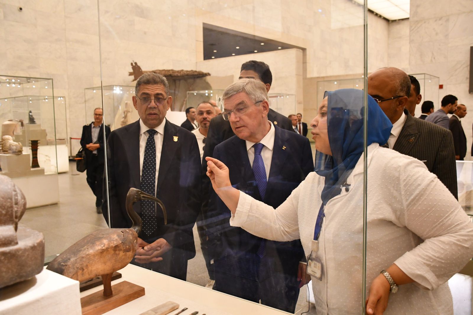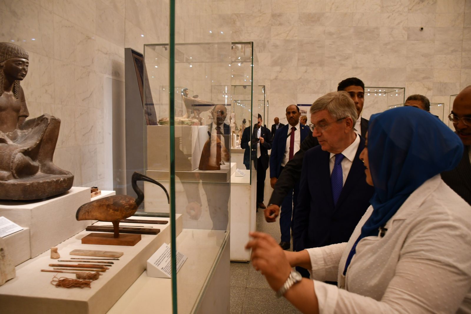 وزير الرياضة يصطحب رئيس اللجنة الأوليمبية الدولية في زيارة للمتحف الحضارات