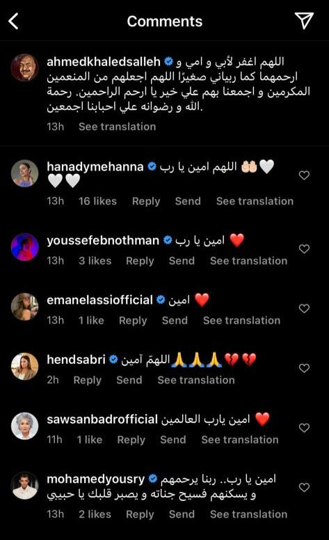 وتفاعلت زوجته الفنانة هنادي مهنا والعديد من النجوم التعليقات علي منشوره، منهم الفنانة سوسن بدر، هند صبري، إيمان العاصي، محمد يسري، يوسف عثمان وغيرهم.