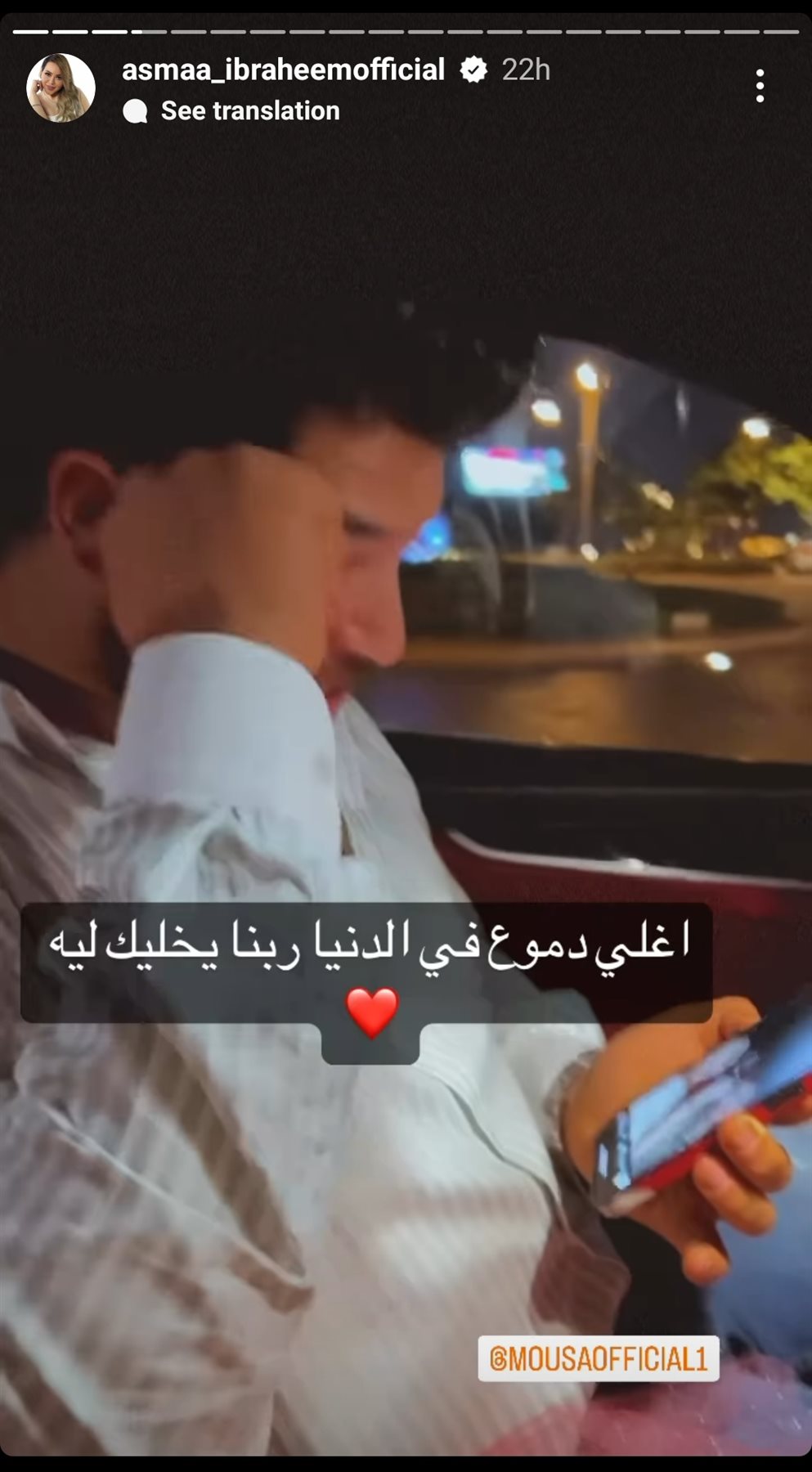 وعلقت أسما إبراهيم على الفيديو على موقع تبادل الصور والفيديوهات إنستجرام قائلا " أغلى دموع في الدنيا ربنا يخليك ليا".