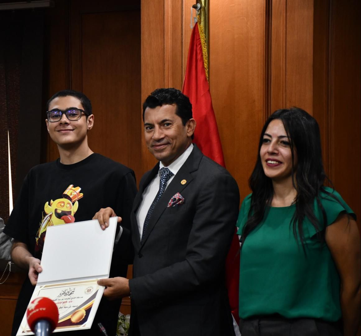 وزير الرياضة يكرم سمر حمزة ويحيي قنديل ومحمد طارق الرشيدي (صور)