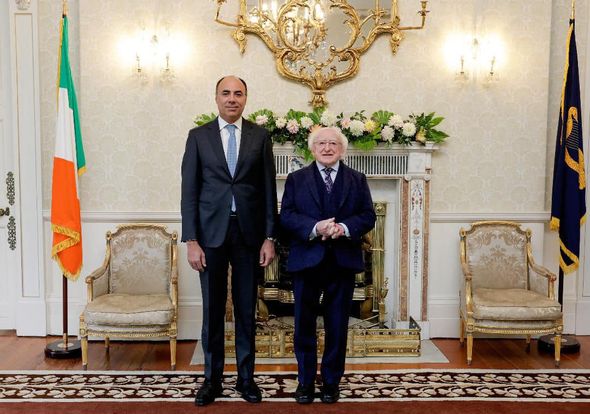 وقد أجريت مراسم تسليم أوراق الاعتماد بمقر القصر الرئاسي في العاصمة دبلن، حيث عُزف السلام الوطني للبلدين، وأعقبه استقبال رئيس أيرلندا للسفير محمد ثروت سليم وتهنئته على توليه مهام عمله رسمياً، متمنياً له التوفيق والنجاح في مهمته.