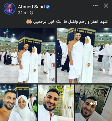 شارك النجم أحمد سعد، جمهوره ومتابعيه مجموعة صور جديده له برفقة زوجته أثناء تأديتهما لمناسك العمره، ونشر أحمد سعد هذه الصور عبر حسابه الشخصي علي "الفيسبوك ".