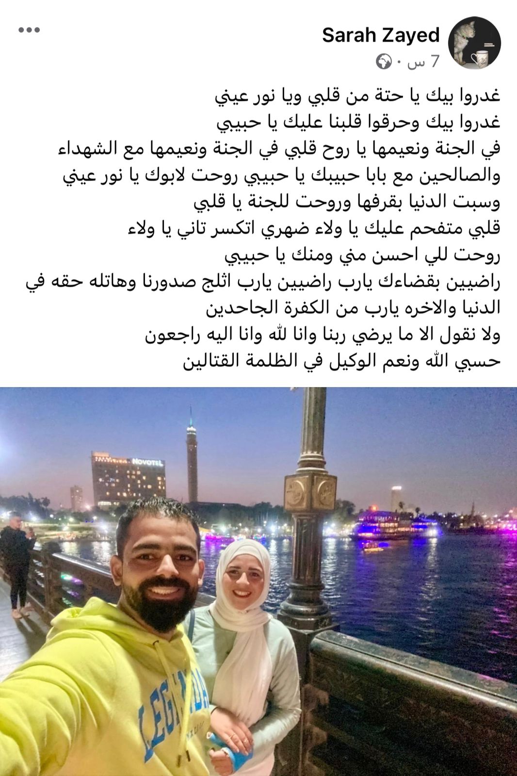 نشرت شقيقة الصيدلي ولاء زايد الذي لقي مصرعه علي يد زوجته بعد سقوطه من الدور الخامس بحلوان رسالة مؤثرة تنعى خلالها شقيقها.