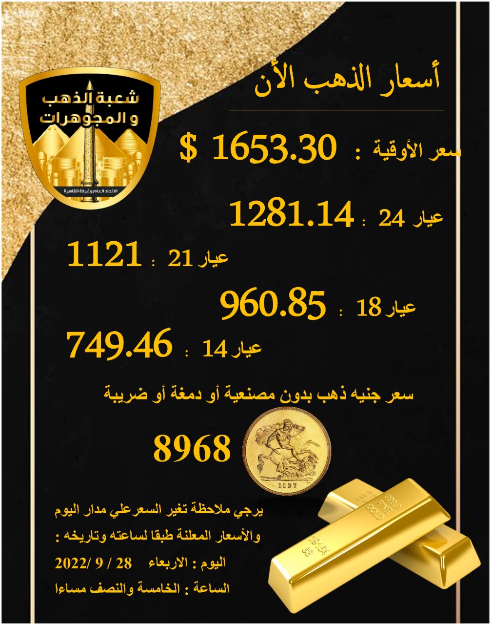 اعلنت الشعبة العامة للذهب ارتفاع أسعار الذهب في الفترة المسائية وجاء سعر الذهب كاتالي: