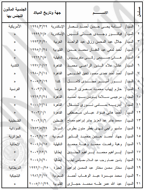 ونص القرار الذى حمل 1815 لسنة 2022، يؤذن لكل من الـ 21 مواطنا اولهم "أسامة يحيي حسن نصار، واخرهم المواطن عبد الله عمر طه حجازى" بالتجنس بجنسيات اجنبية مع احتفاظهم بالجنسية المصرية، واليكم نص القرار والاسماء: