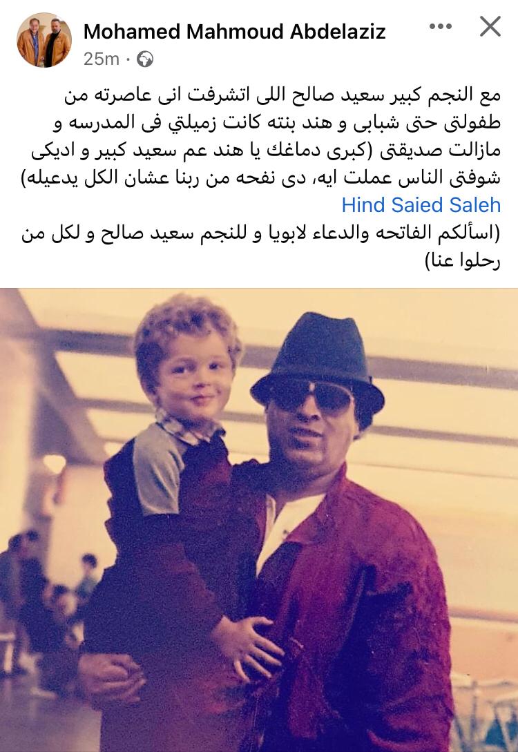 وعلق محمد محمود عبدالعزيز على صفحته على موقع التواصل الإجتماعي" الفيسبوك " قائلا:"مع النجم كبير سعيد صالح اللى اتشرفت انى عاصرته من طفولتى حتى شبابى و هند بنته كانت زميلتي فى المدرسه و مازالت صديقتى (كبرى دماغك يا هند عم سعيد كبير و اديكى شوفتى الناس عملت ايه، دى نفحه من ربنا عشان الكل يدعيله".