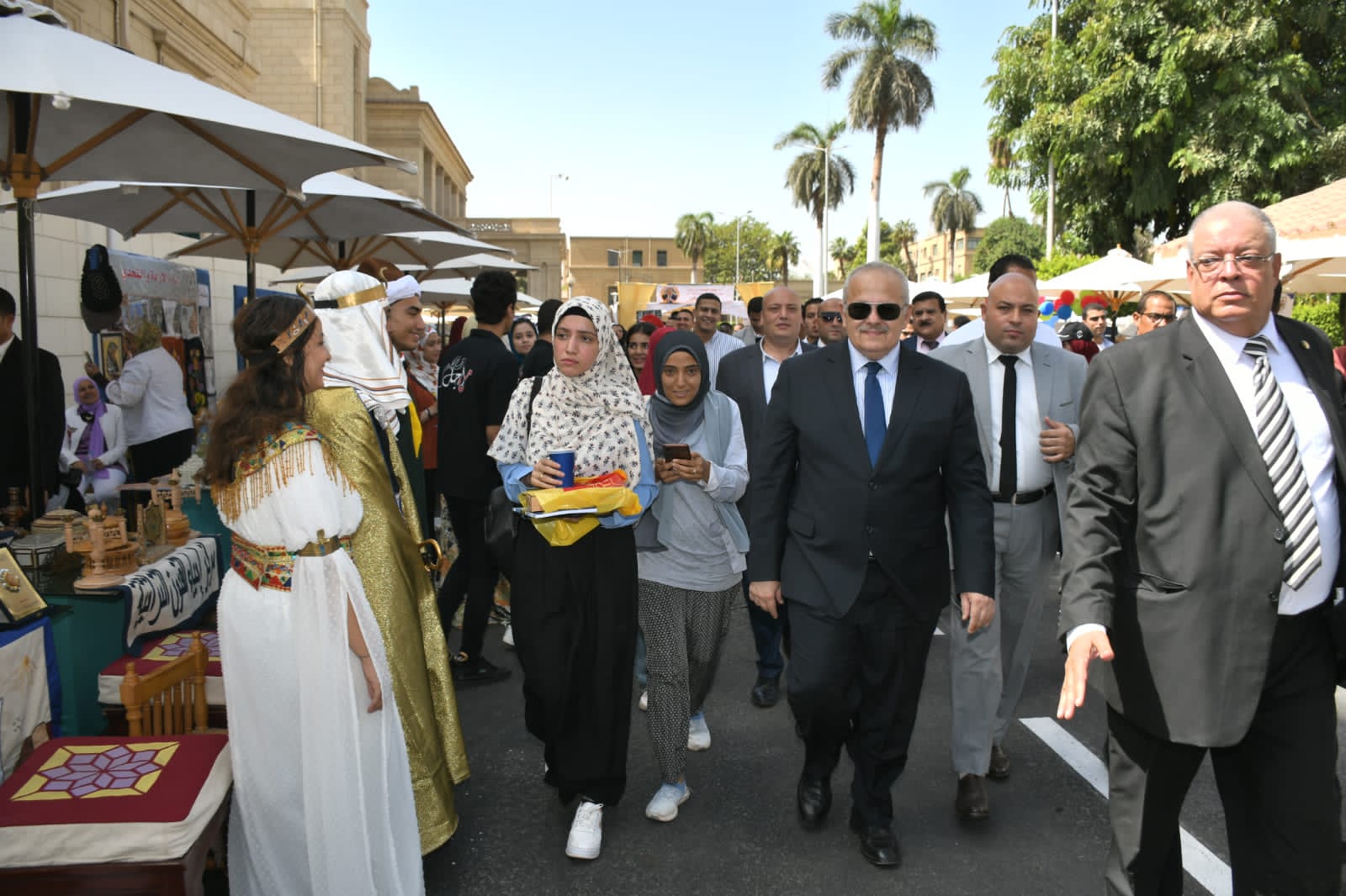 وتفقد رئيس جامعة القاهرة، معرض الأنشطة الطلابية المقام بالحرم الجامعي، وأجرى حوارا مفتوحا مع الطلاب، موجهًا رسالة للطلاب الجدد بأهمية ممارسة الأنشطة الطلابية المختلفة التي تنمي مهاراتهم، مؤكدًا أن الجامعة تهدف إلى تخريج مواطنين صالحين قادرين على مواكبة احتياجات سوق العمل والمشاركة في عملية التنمية المستدامة للوطن، لافتًا إلى أن دور الجامعة لا يقتصر على التعليم فقط، بل التعليم والتثقيف والتدريب، بما يعني بناء المجتمع بإعداد الطالب الجامعى إعدادًا كليًا.
