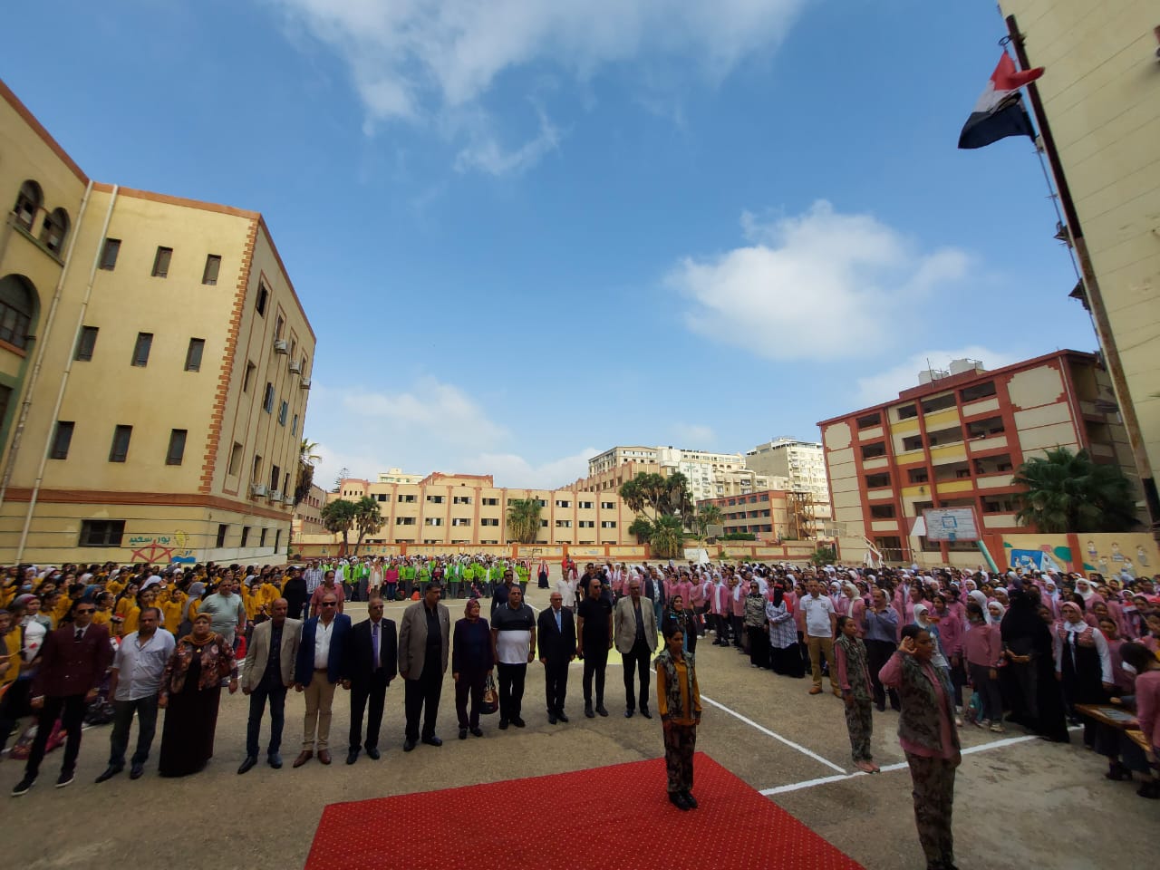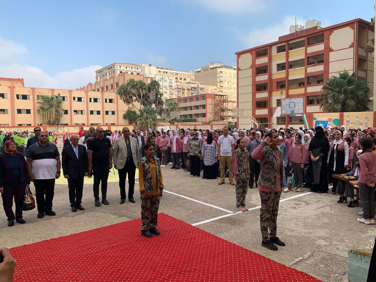 بالسلام الوطني وتحية العلم.. محافظ بورسعيد يشارك الطلاب أول يوم دراسة بالمدراس