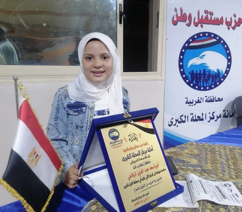 كما كرمت أمانة مركز المحلة، الطالبة أميرة سعد بنت قرية السجاعية، بمركز المحلة، وكذلك تكريم والدها سعد عبد العزيز الرفاعي، والحاصلة علي المركز الثاني عالمياً في حفظ القرآن الكريم، والتي تم تنظميها في حفظ القرآن الكريم في مدينة دبي.