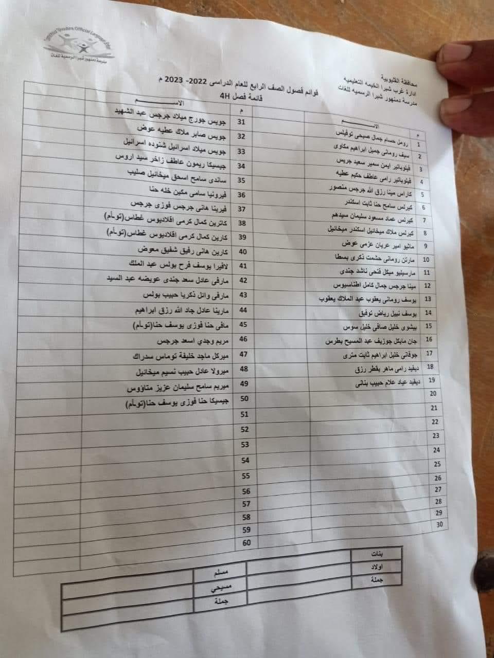 وأوضحت الصورة المتداولة قائمة بأسماء 50 طالبا مسيحيين من الجنسين في فصل H4 بدون زملائهم المسلمين.
