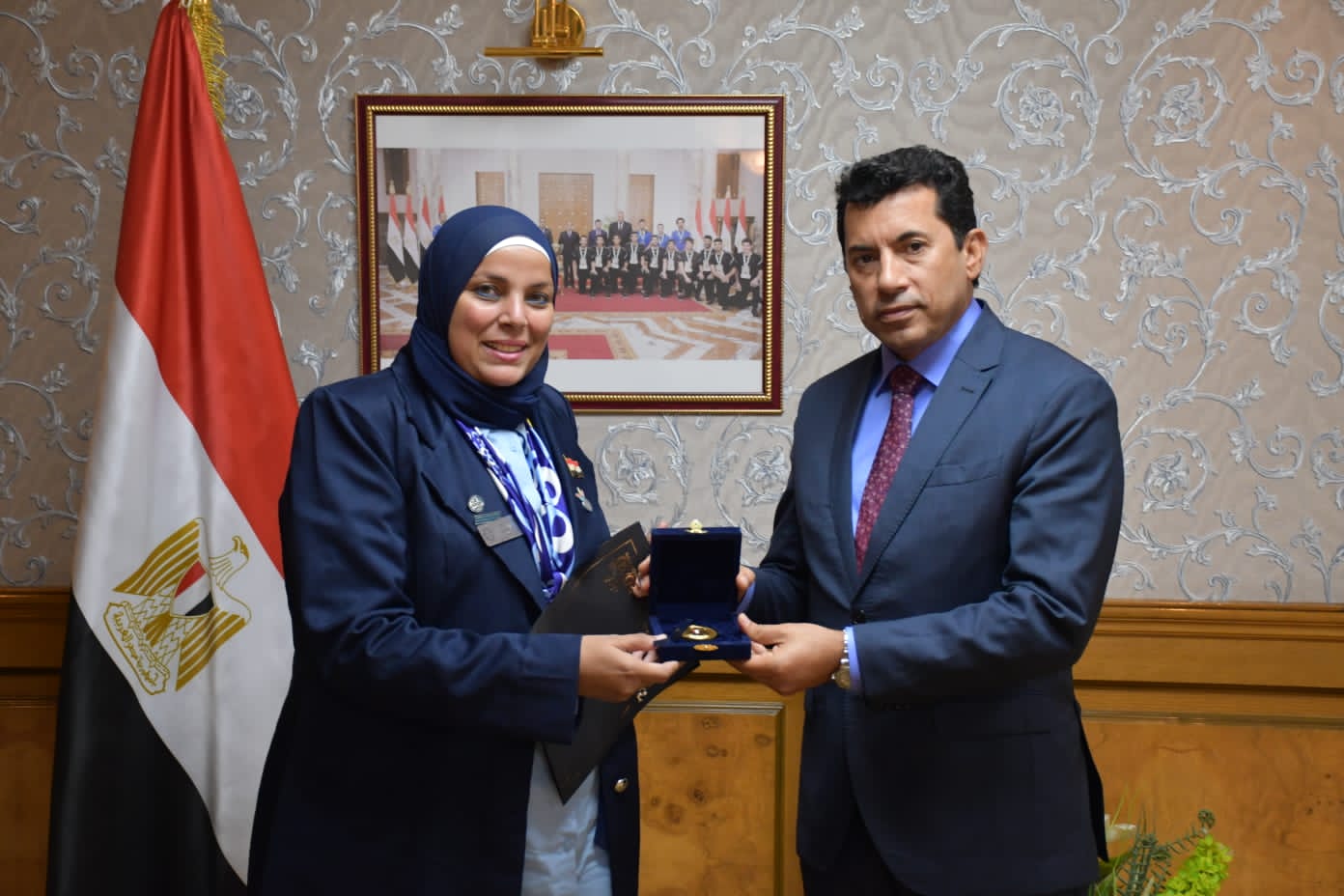وزير الرياضة يكرم محمد مصطفي و مني أمين لفوزهما بالمركز الكشفى العربي