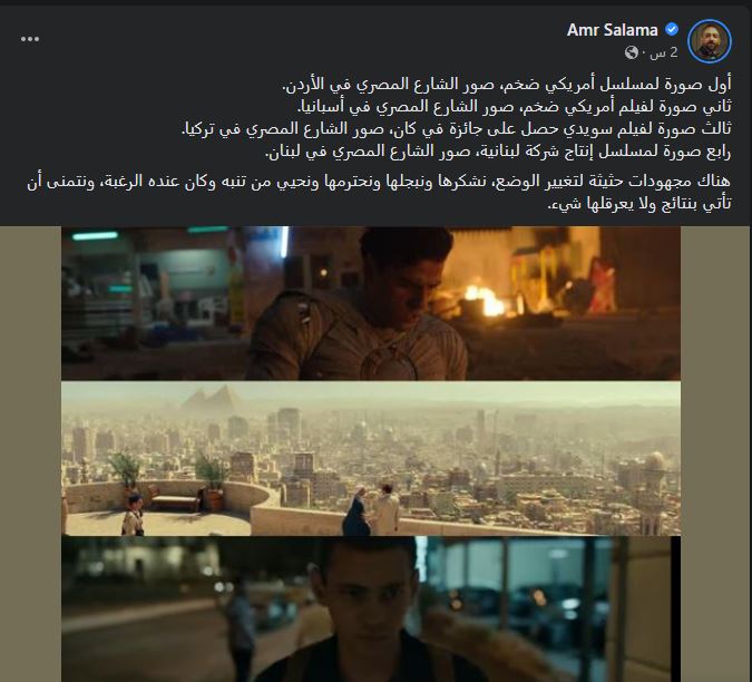 شارك المخرج عمرو سلامة جمهوره ومحبيه، بصور من مشاهد لمسلسلات عالمية، وعلقا عليها قائلا: “ أول صورة لمسلسل أمريكي ضخم، صور الشارع المصري في الأردن”.