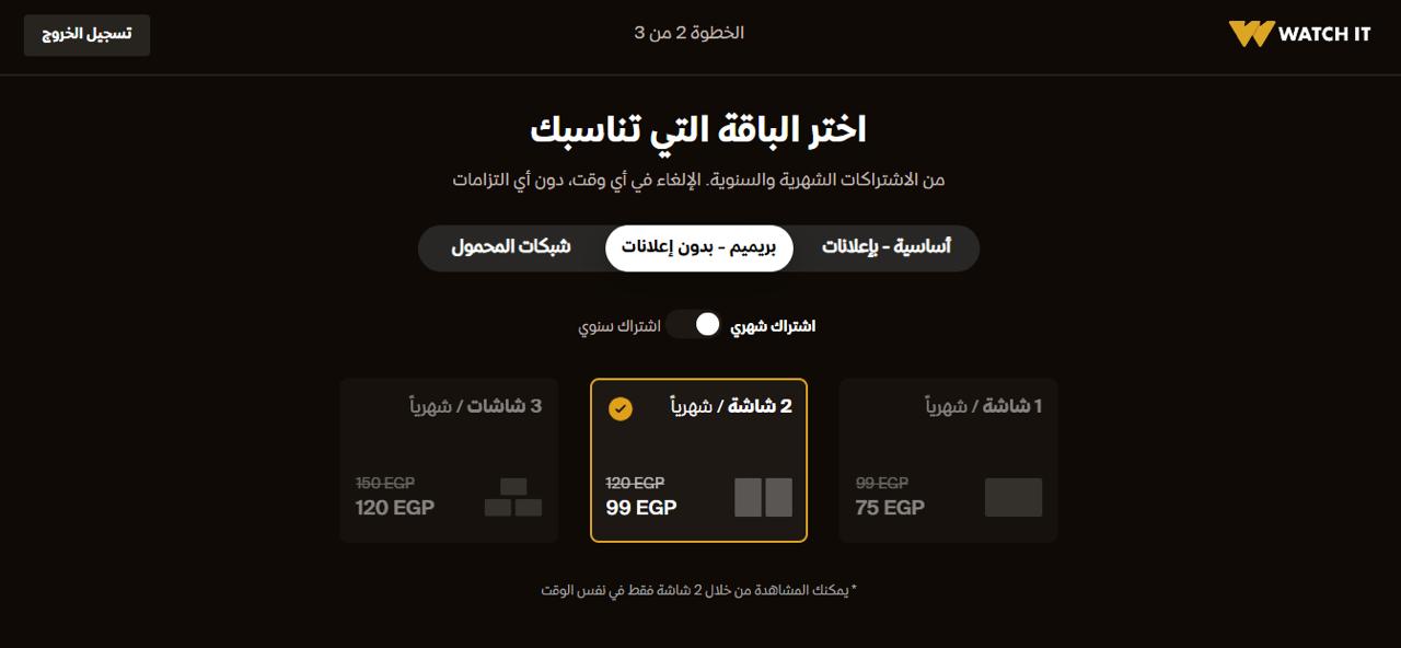 كما أعلنت أيضاً WATCH IT عن أسعار باقاتها السنوية الجديدة ليكون سعر الـ12 شهر بسعر الـ10 شهورعلى جميع اشتراكاتها سواء الأساسية المدعوم بالإعلانات أوالبريميم بدون إعلانات.