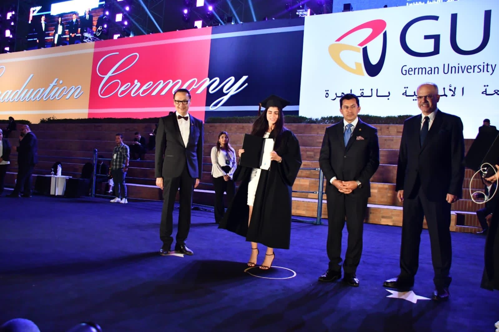شهد الدكتور أشرف صبحي وزير الشباب والرياضة، مساء اليوم السبت، الإحتفالية التي أقامتها الجامعة الألمانية بالقاهرة، لتخريج دفعة جديدة من طلاب كليات "الاقتصاد، إدارة الأعمال، الإعلام" بالجامعة، وذلك بحضور المهندس محمود عصمت وزير قطاع الأعمال العام، السفير محمد العرابي وزير الخارجية الأسبق، والدكتور أشرف منصور رئيس مجلس أمناء الجامعة الألمانية بالقاهرة، والدكتور ياسر حجازي رئيس الجامعة الألمانية بالقاهرة، وعمداء الكليات، وأعضاء هيئة التدريس بالجامعة.