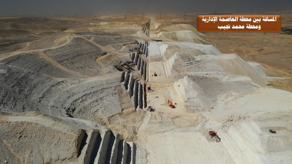 وفي محطة محمد نجيب تابع الوزير تقدم معدلات تنفيذ محطة محمد نجيب والتي تخدم مناطق القطامية والقاهرة الجديدة ومناطق العمران الجديدة الواقعة جنوب طريق العين السخنة.