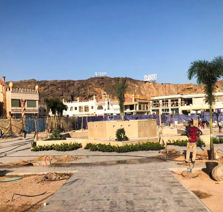 يواصل المسئولين بمدينة شرم الشيخ أعمال التطوير فى ساحة مسجد الصحابة بالسوق التجارى حيث تتواصل أعمال إنشاء النافورة الراقصة التى تعمل بالموسيقى وبألوان الطيف.